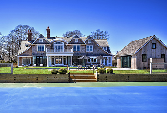 Enjoy a piece of paradise on nearly 1.4 acres, with expansive southern views that look directly over perfectly manuacured farmland. This 8 bedroom and 5 full bath traditional home with a contemporary design inside encompasses 10,000 sq. feet on 3 levels of living space. With a state of the art kitchen, butler's pantry, dining room, living room, a guest master suite with fireplace as well as a 3 season room with fireplace and heated floors. The lower level is finished with a wine cellar, home theatre, gym, billiards room and a pair of bedroom suites. Enjoy the fully landscape gardens, pool, sunken tennis court, pool house and renovated barn which can house up to 3 vehicles.